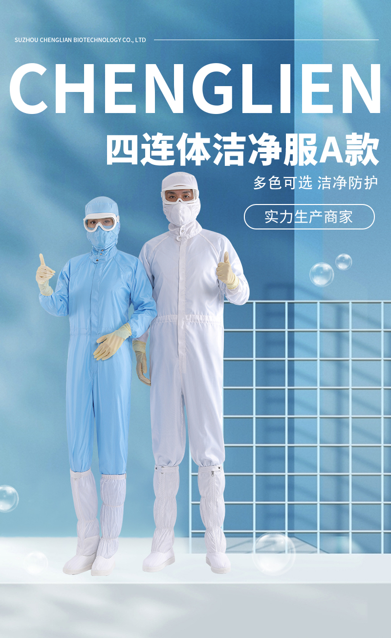 款式說明:四連體,上衣連帽子褲子連腳套;領口暗扣設計,更貼合面部使防護更嚴實。腰部松緊帶或抽繩設計,彎腰不束縛,穿著更為舒適。